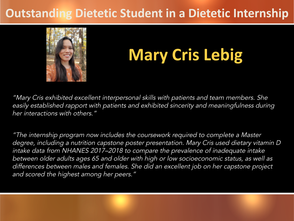 Outstanding Dietetic Student in a Dietetic Internship