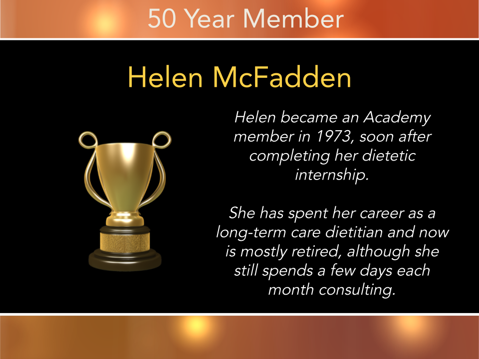 - Outstanding Dietetics Educator - Awarded by the Academy of Nutrition and Dietetics.